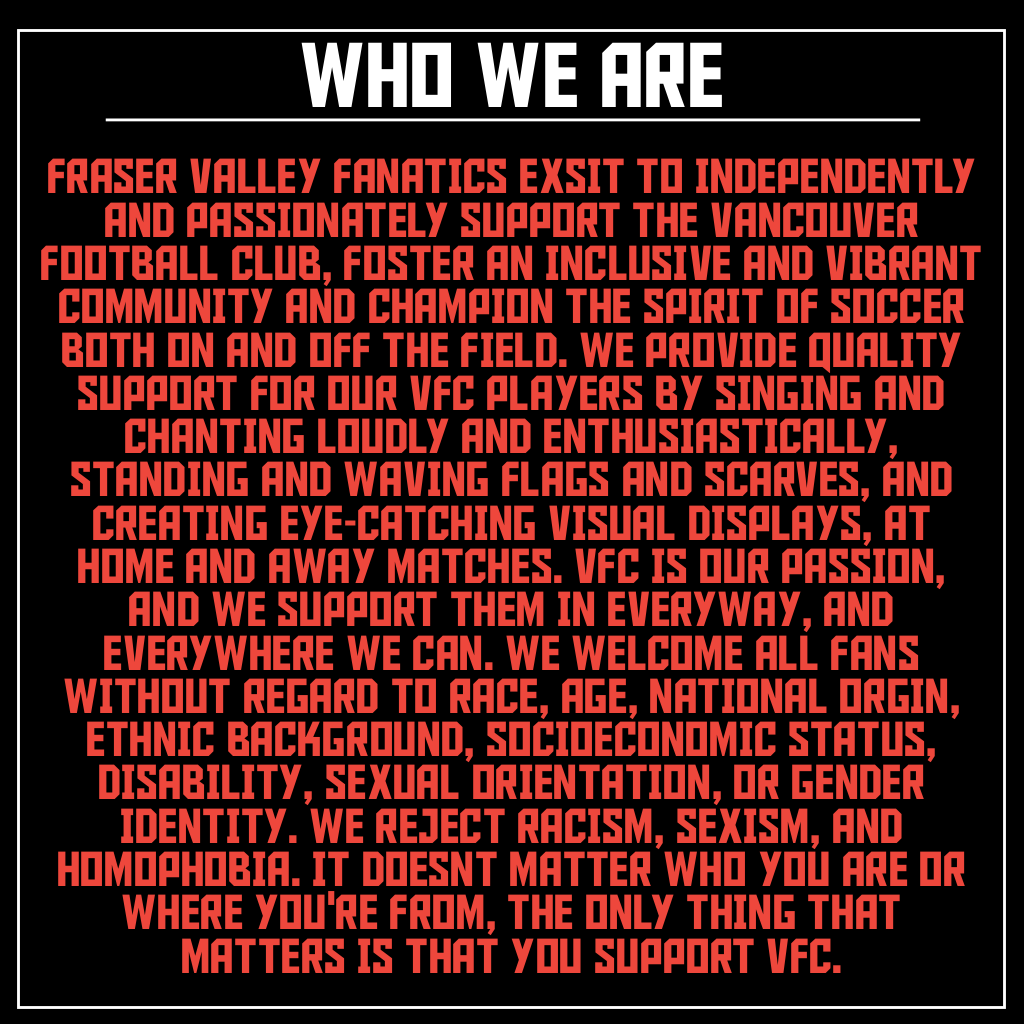 Want to help shape the future? The Fanatics are a formal association committed to creating the best matchday atmosphere in the CPL. Becoming a member is the first step to becoming apart of the Fraser Valley Fanatics. Check out the Membership Page Here